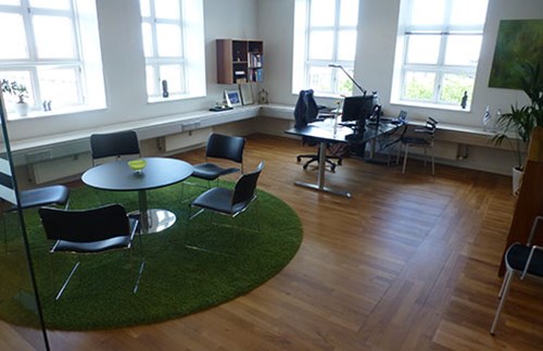 Ombygning af den gamle værkstedsbygning til nye kontorfaciliteter. Bygningen blev gennemrenoveret med nyt tag, vinduer, døre, indretning og alle tekniske installationer.