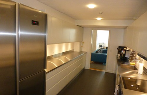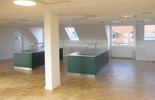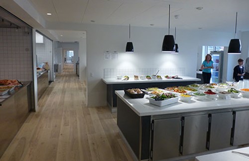 Ombygning samt udvidelse af eksisterende kantine samt nyt stort produktionskøkken med åbning ud til kantine / buffetområde. Nye flotte egetrægulve samt akustiklofter i hele kantinen. Belysningerne blev udskiftet til nye med dæmp samt nyt ventilationsanlæg placeret i tagrum. Opsætning af fliser på vægge og epoxygulv i produktionskøkkenet, monteret med nye maskiner og stålborde fra Brønnum.