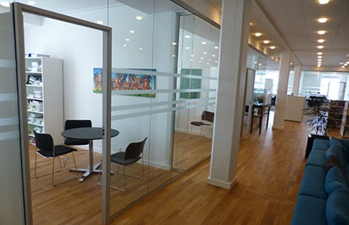 Ombygning af Glostrup Forsyning’s administrationsbygning. Bygningen ombygges og nyindrettes til et moderne kontor med åbne glaspartier og rum for formelle og uformelle møder mellem medarbejdere og gæster.