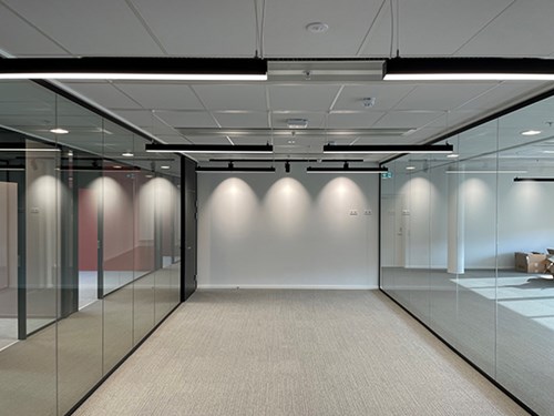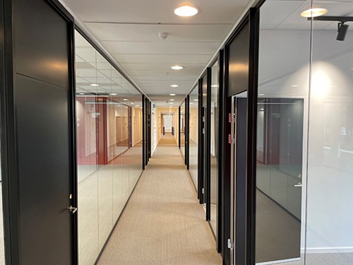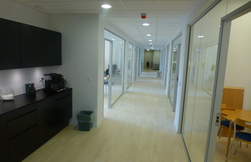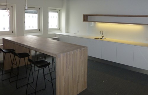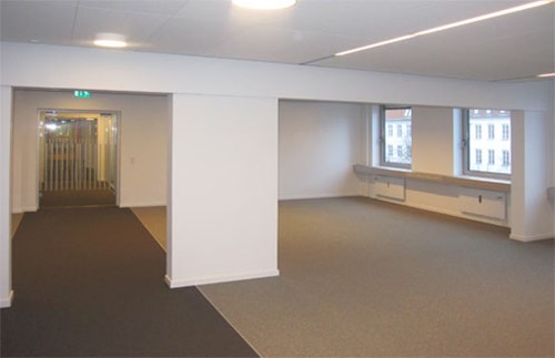 Ombygning af eksisterende kontorbygning til nye lejer. KL stod for tømrerentreprisen med nye vægge og lofter.