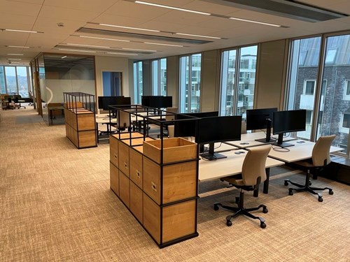 Indretning af kontorlejemål for KLP Ejendomme. Kontor med nye vægge, lofter og gulve samt installationer.
