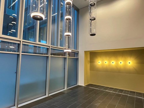 Renovering af 4 store indgangspartier på administrationsbygningen på DTU. Der blev i samme anledning lavet ny reception og kontorer. Ligeledes blev der monteret nye specielle belysninger i de lange ankomstgange i forbindelse med indgangspartier.