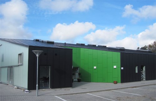 Bygning er opført med beton elementer, søjler og dæk, beklædt med aluplader samt store glaspartier der giver et godt lysindfald. Der blev ligeledes lavet udvendigt anlægsarbejder, med gangbro og flugtvejstrappe.