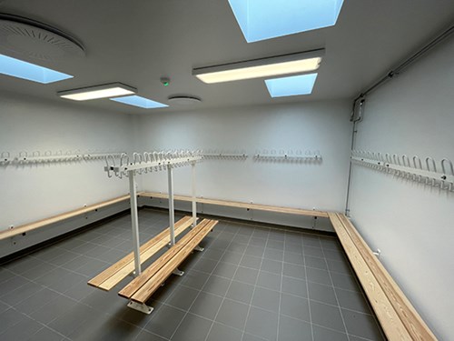 Der blev etableret nyt fitnesscenter på første sal og stort område i stuen med fest- og forsamlingssal, kontorer og velfærdsfaciliteter.